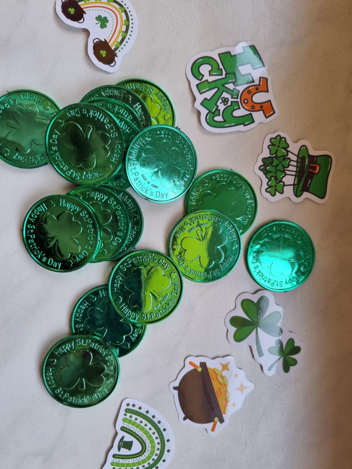 1. Poszukiwanie monet z garnca z końca tęczy. Ukryto w szkole 31 monet - są zielone i błyszczące z wygrawerowanym hasłem Happy St. Patrick s Day i symbolem koniczyny. Każdy, kto znalazł monetę przynosił ją podczas przerw do gabinetu 31a. W zamian za monetę szczęśliwy znalazca otrzymał niespodziankę.