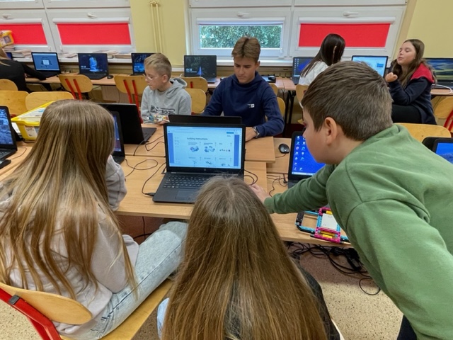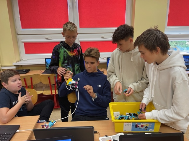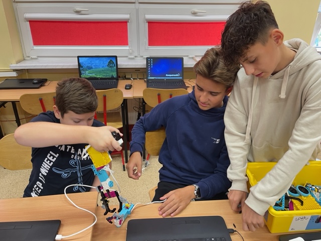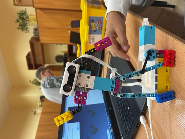 Odbyła się również kolejna seria zajęć z wykorzystaniem klocków LEGO Education SPIKE Prime. Zsynchronizowaliśmy pracę silników „tancerza breakdance”, określaliśmy kryteria testowania konstrukcji "Podaj klocek".