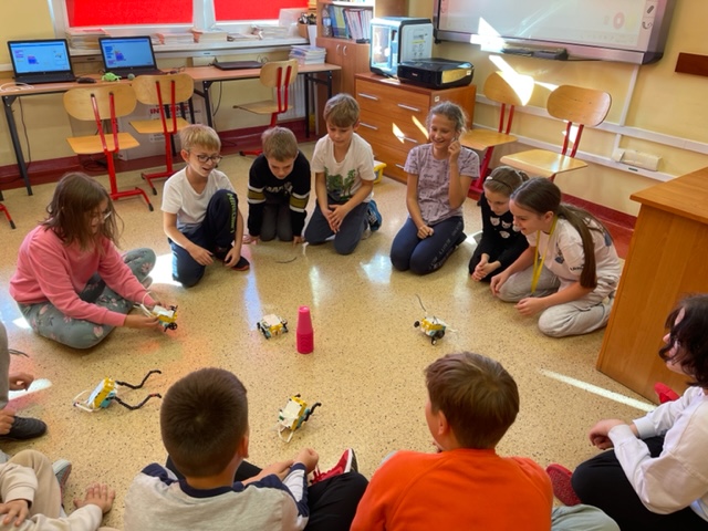 Drugi miesiąc korzystania z zasobów pozyskanych w ramach programu #LaboratoriaPrzyszłosci. Uczniowie projektowali różne prototypy, aby znaleźć najbardziej efektywny sposób poruszania się robota. Po wielu modyfikacjach zorganizowali wyścig skoczków.