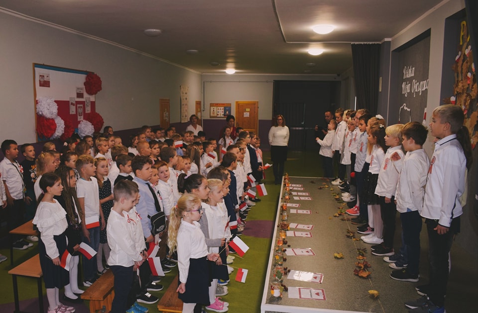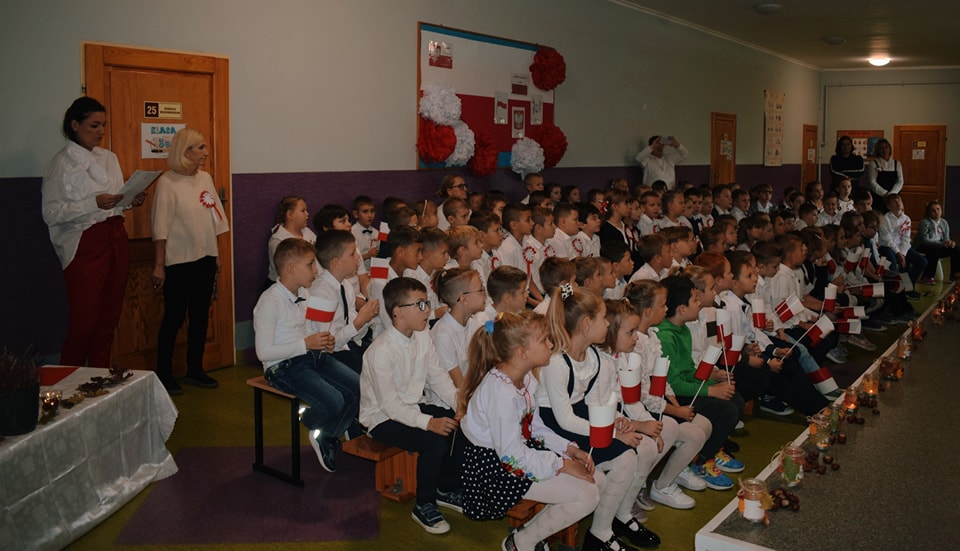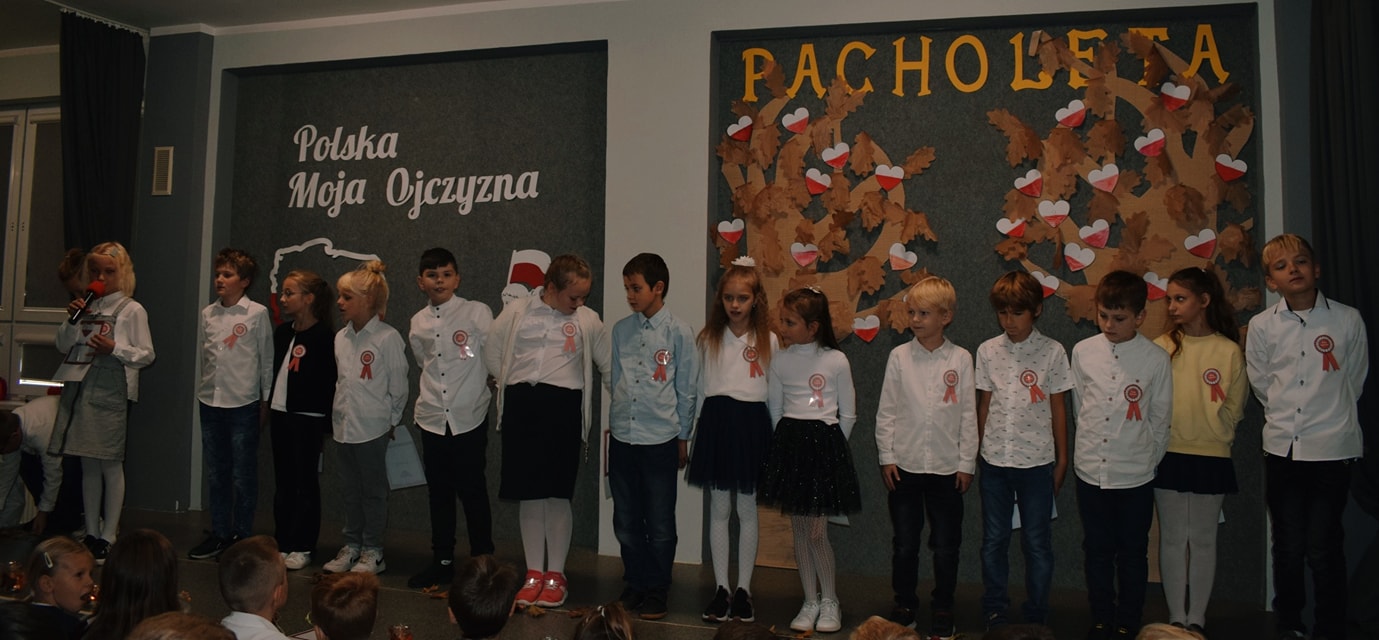 W związku z obchodami Święta Niepodległości w naszej szkole w dniach 10.11. oraz 13.11.2023. odbyły się apele dla klas I-III i dla klas IV-VIII. Społeczność uczniowska w odświętnych strojach brała w uroczystościach z programem artystycznym i montażem słowno-muzycznym.
