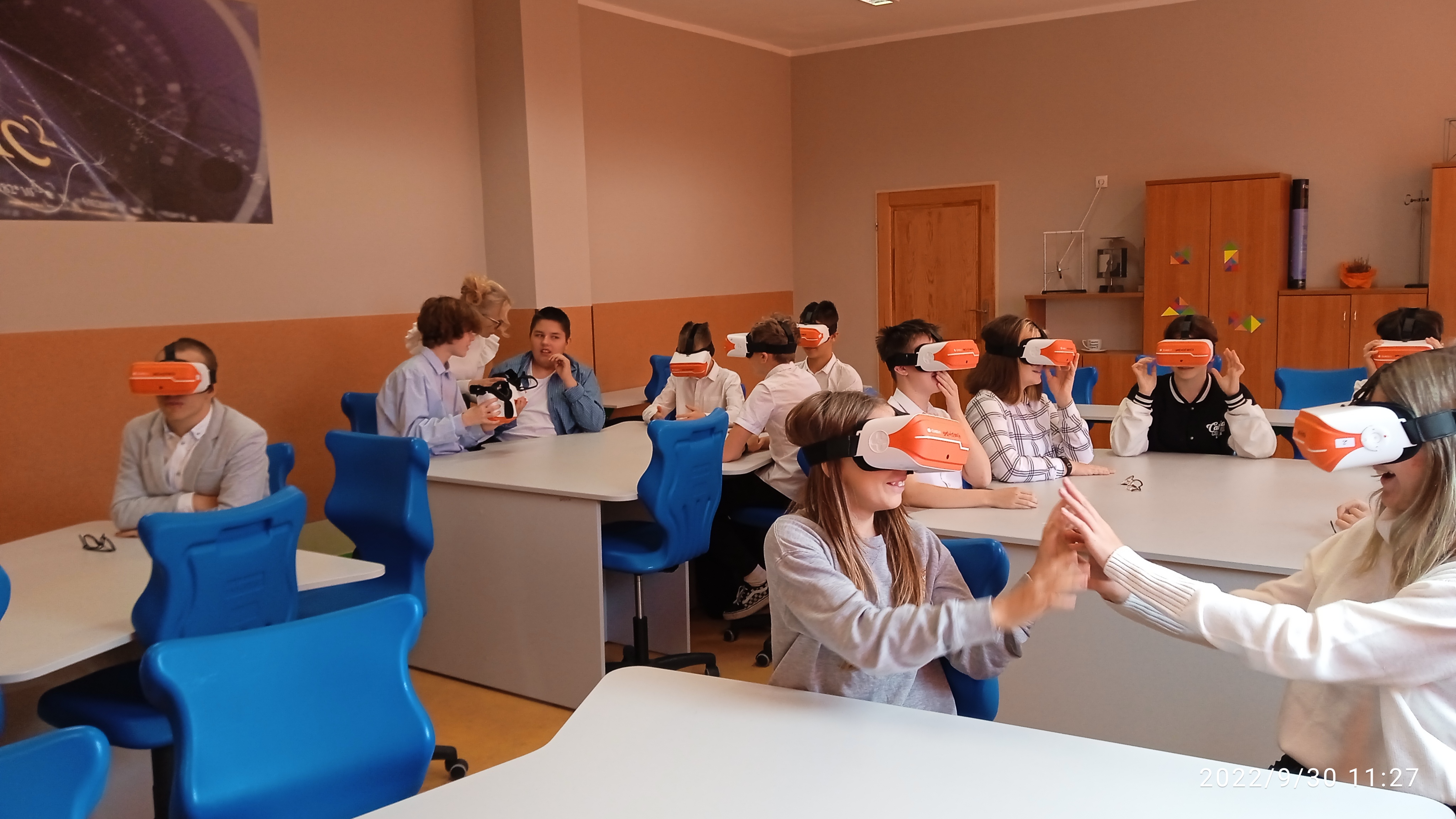 W klasie 7a odbyły się zajęcia z fizyki, podczas której uczniowie zapoznawali się z działaniem okularów VR.