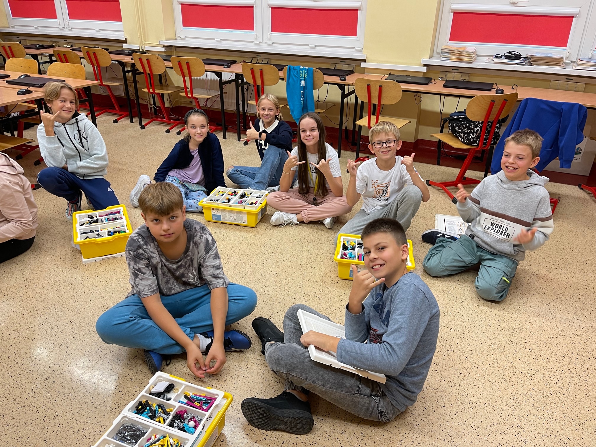 Klasa 5c zapoznała się z zestawami edukacyjnymi klocków LEGO Education SPIKE Prime obejmującymi edukacyjne projekty z zakresu inżynierii i robotyki, które rozwijają umiejętność krytycznego myślenia, analizowania danych oraz rozwiązywania złożonych problemów, nawiązujących do realnych zjawisk w świecie.