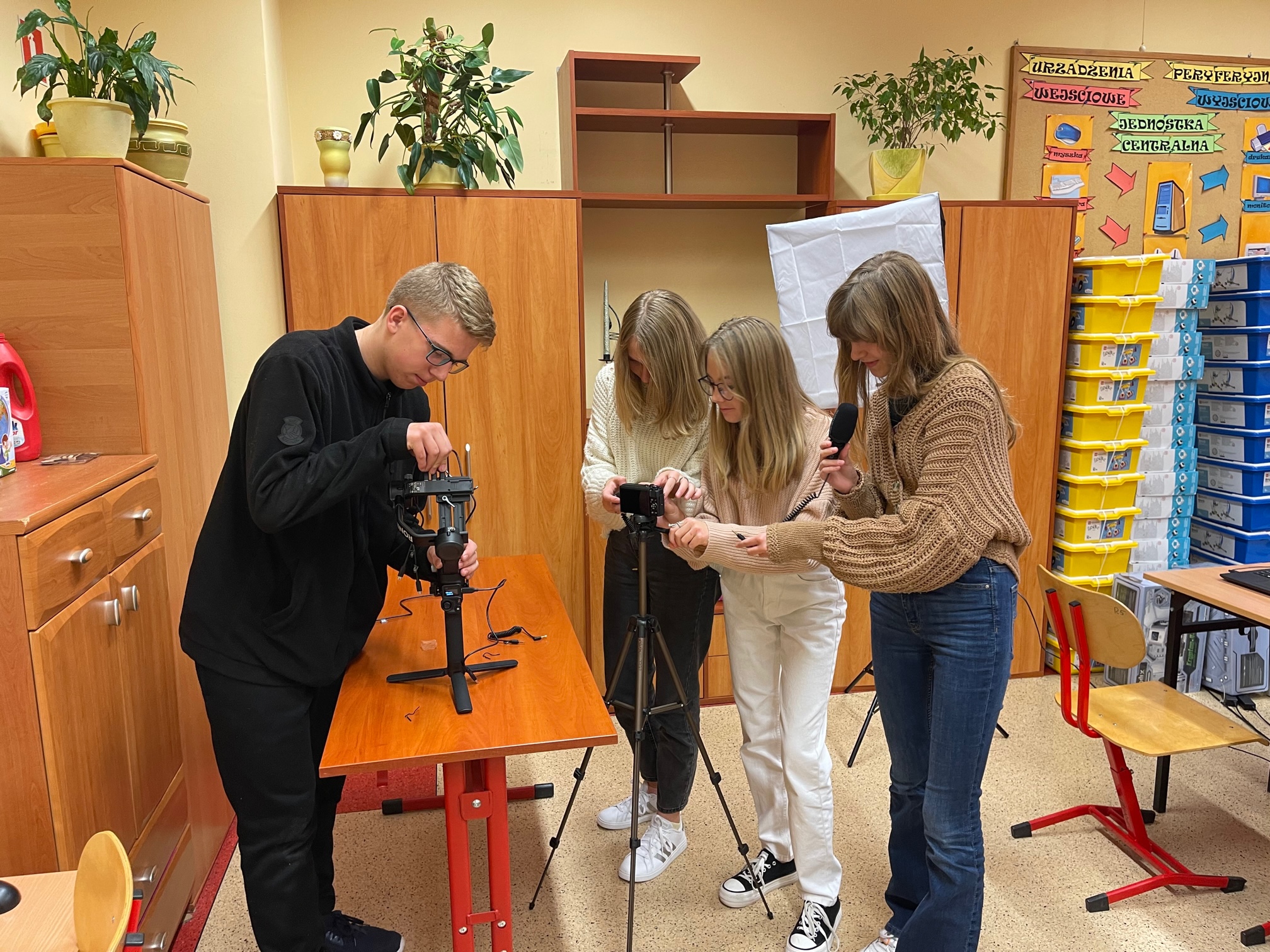 Uczniowie naszej szkoły podczas wrześniowych zajęć z informatyki rozpoczęli przygodę w ramach projektu Laboratoria Przyszłości. Klasa 8d pierwsze zajęcia poświęciła na zapoznanie się ze sprzętem dedykowanym fotografii i kinematografii. Był to m. in.: